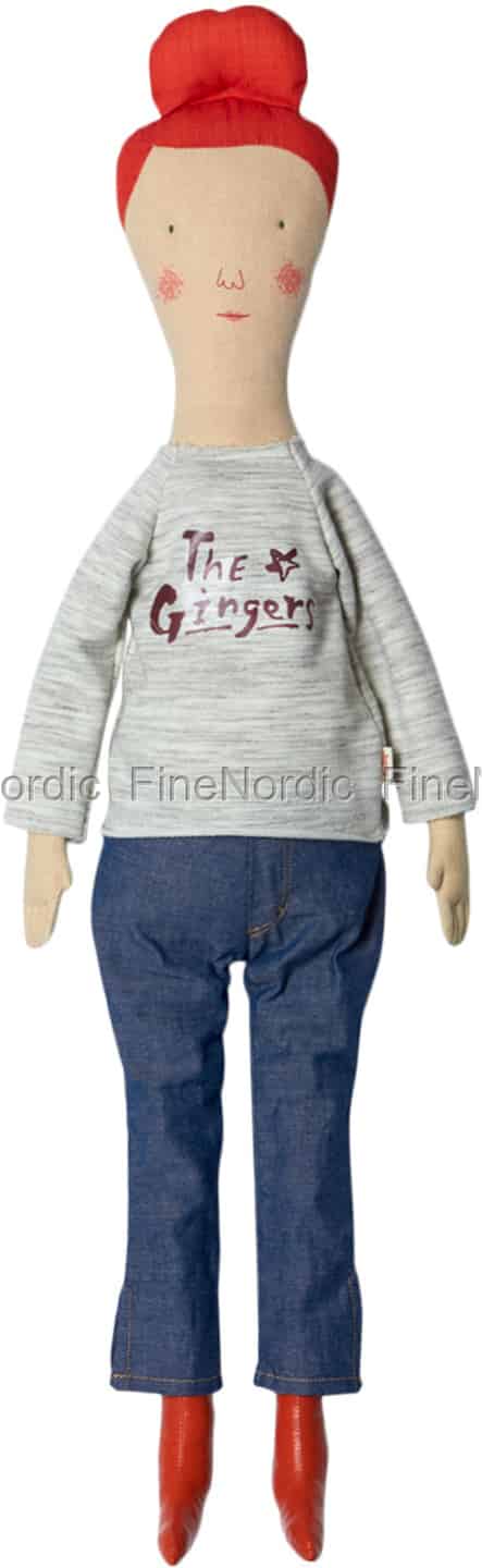 Die Ginger Mutter liebt ihre Ginger Familie mehr als alles andere in der Maileg Welt. Sie spielt mit ihren Kindern, kocht Mahlzeiten für sie und den Ginger Vater und am Sonntag backt sie immer einen Kuchen für die ganze Familie. Sie trägt ihr Ginger Haar in einem Dutt, damit es bei all den verschiedenen Aktivitäten ihr nicht in die Quere kommt. Sie sieht in ihrem "The Gingers" Shirt, Jeans und bunten Stiefeln ziemlich cool und lässig aus. Sie wird eine wunderbare Bereicherung für jede Ginger Sammlung sein.