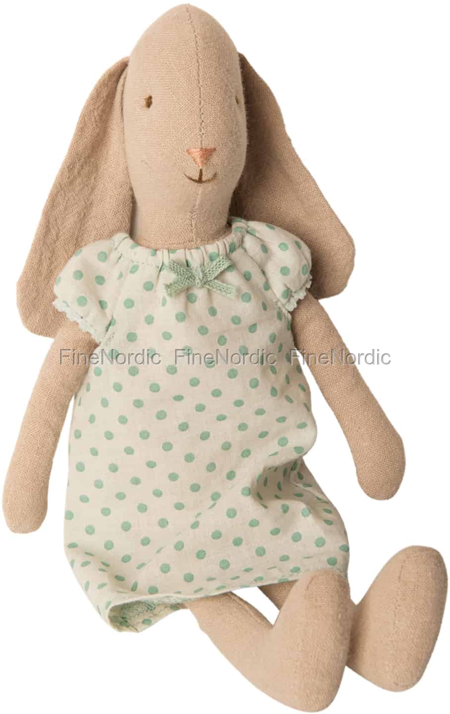 Dieses Maileg Größe 2 Häschen trägt ein wunderschönes Nachthemd in Mint. Sie ist ein fröhliches Hasenmädchen, das immer süß lächelt. Sie liebt es, an Sonntage lange auszuschlafen und dann einen gemütlichen Tag in ihrem bequemen Nachthemd zu verbringen. Mach sie zum neuesten Mitglied Deiner Hasen Sammlung und hab viel Spaß beim Spielen mit ihr und all den anderen Hasen. Dieser Maileg Hase ist ein schönes Geburtstags- oder Weihnachtsgeschenk für einen kleinen Maileg Fan.