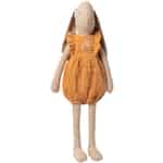 Der Größe 4 Hase, mit seinem schicken Jumpsuit, ist ein großartiger Spielgefährte für einen kleinen Jungen oder ein kleines Mädchen und auch ein schöner Mittelpunkt im Kinderzimmer. Der große Hase trägt einen orangefarbenen Overall, der mit einer Blumenstickerei und Rüschen verziert ist. Dieses niedliche Kuscheltier hat ein fröhliches Lächeln im Gesicht und der Hase ist immer zum Spielen bereit und liebt es ganz viel Spaß zu haben. Das Plüschtier und die Kleidung können beide bei 30 ° C in der Maschine gewaschen werden. Der Größe 4 Maileg Hase im Overall ist eine schöne Ergänzung für jede Maileg Sammlung.