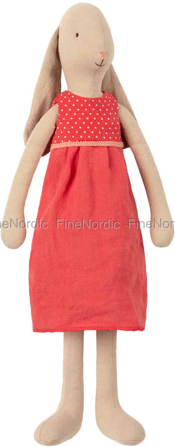 Schauen Sie sich doch mal dieses entzückende Hasenmädchen von Maileg an! Sie trägt nicht nur ein hübsches ärmelloses rotes Kleid, sondern auch ein breites Lächeln im Gesicht. Sie liebt es, mit ihren anderen Hasenfreunden viel Spaß zu haben. Ihr größter Wunsch jedoch ist, sich mit einem netten kleinen Jungen oder Mädchen anzufreunden. Ein kleiner Freund, mit dem sie spielen und dem sie Gute Nacht Geschichten erzählen kann. Sie mag auch lange Autofahrten und Besuche im Zoo und auf dem Spielplatz und würde ihren neuen Freund gerne zu verschiedenen Ausflügen begleiten. Vielleicht kennen Sie ja ein kleines Kind, das mit ihr befreundet sein möchte?