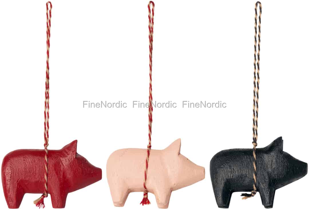 Maileg Holzschwein Weihnachtsschmuck - 3er Set