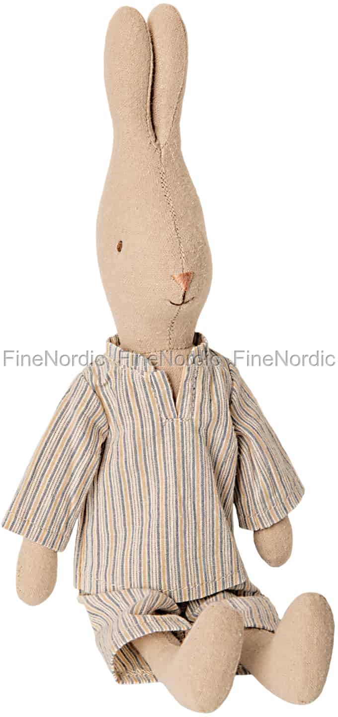 Das Maileg Kaninchen Größe 2 im Pyjama ist immer gut gelaunt und liebt es zu lächeln und viel Spaß zu haben. Der Kaninchen Junge hat sein gestreiftes Lieblings-Pyjama-Set an, und wenn es nach ihm ginge, würde er es den ganzen Tag tragen. Er hält die Ohren hoch, weil er immer aufpasst, was um ihn herum vorgeht. Der Kaninchen Junge spielt gerne mit seinen Kaninchenfreunden, sowohl drinnen als auch draußen. Wenn er mal schmutzig werden sollte, dann kann er ganz einfach bei 30 ° C in der Waschmaschine gewaschen werden. Er ist auf der Suche nach einem kleinen Jungen oder Mädchen, mit dem er spielen und kuscheln kann. Sie könnten dann vielleicht auch zusammen auf den Spielplatz gehen oder den Zoo besuchen oder eine Tee Party machen und dann auch ein paar von den anderen Kaninchenfreunden einladen. Dieses Kaninchen ist ein großartiger Begleiter für einen kleinen Jungen oder ein Mädchen und ein wunderbares Geburtstagsgeschenk für einen kleinen Maileg Fan.
