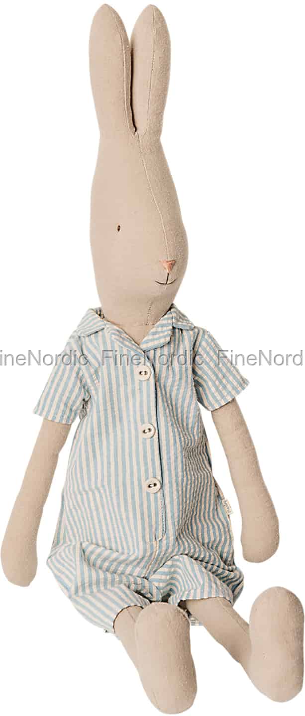 Der Pyjama dieses Maileg Kaninchens sieht nicht nur toll aus wegen seines Streifenmusters und den schicken Knöpfen, sondern er ist dazu auch noch super bequem. Dieser einteilige Anzug, sowie auch das Kaninchen, können bei 30 ° C in der Waschmaschine gewaschen werden. Es kann also mit diesem Größe 4 Kaninchen sowohl drinnen als auch draußen gespielt werden und man muss sich keine Sorgen machen, falls der Schlafanzug oder das Kaninchen mal schmutzig werden sollte. Er trägt immer ein fröhliches Lächeln im Gesicht und weiß dank der hochgestellten Ohren immer, aus welcher Richtung der Wind kommt. Er ist ein wunderbarer Spielkamerad und eine tolle Geburtstags- oder Weihnachtsgeschenksidee für einen kleinen Jungen oder ein kleines Mädchen.