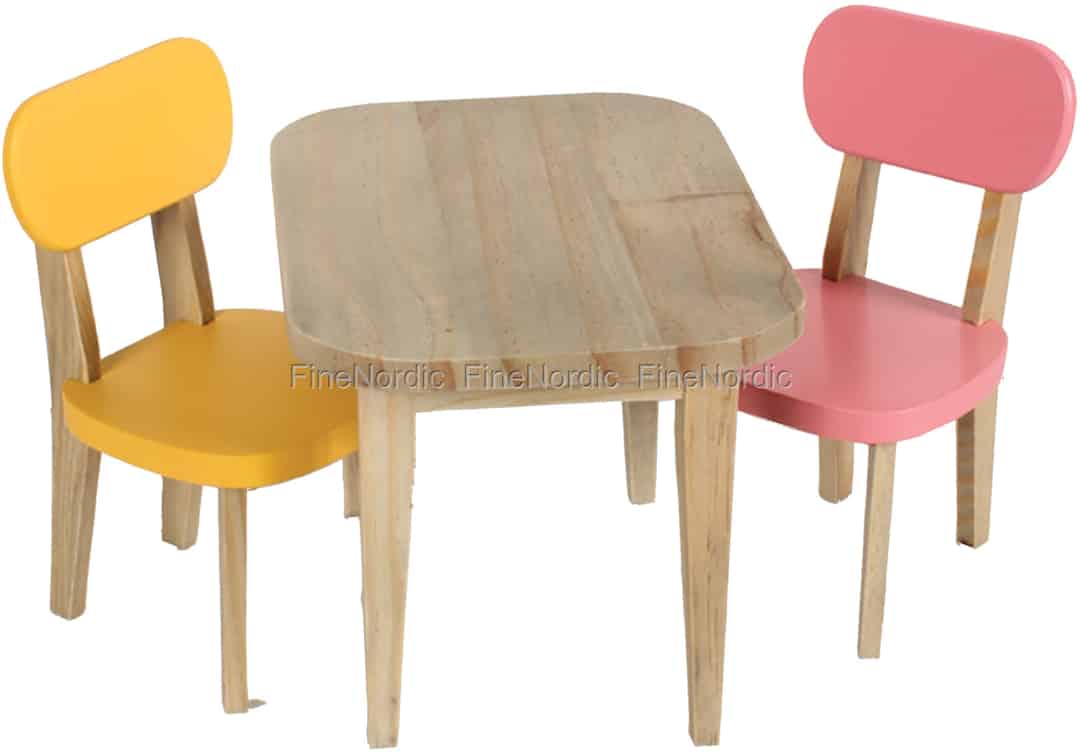 Das hübsche Maileg Holztisch und Stühle Set in Gelb und Rosa ist ein beliebter Aufenthaltsort der Maileg Kaninchen, denn der Tisch und die Stühle haben genau die richtige Größe für die niedlichen Mini Maileg Kaninchen. An dem Tisch essen die Maileg Kaninchen gerne ihre Lieblingskarottentorte, oder malen Blumen-und Wiesenbilder und basteln Dekorationen aus Dingen, die sie draußen bei ihren Hoppelausflügen gefunden haben. (Es gibt das Set außerdem auch mit Stühlen in den Farben Türkis und Koralle)