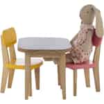 Maileg Kaninchen-zubehör - Holztisch mit 2 Stühle - Gelb und Rosa
