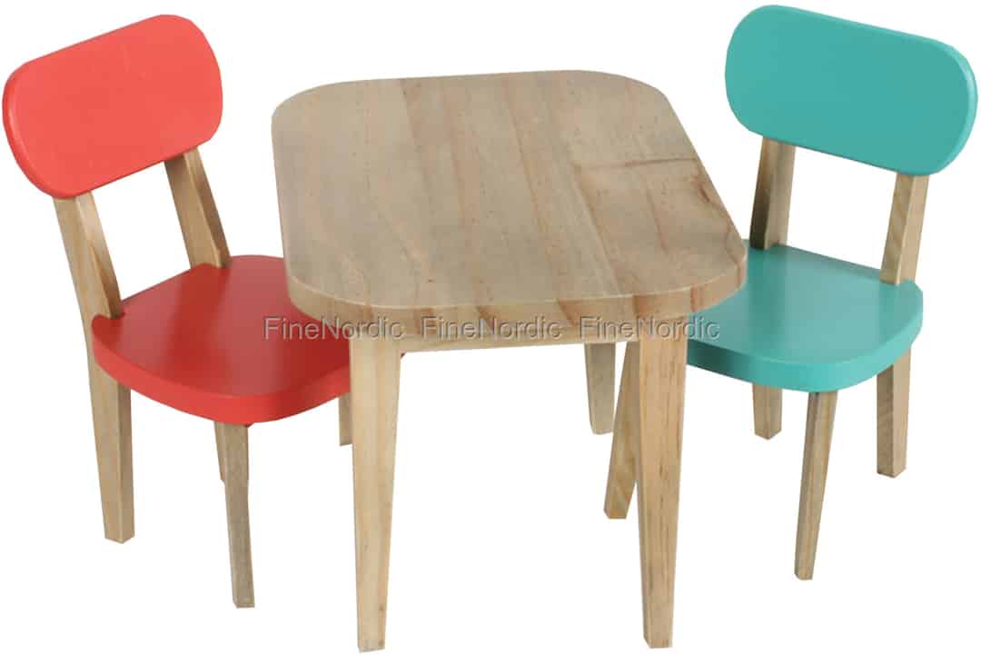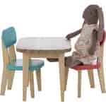 Maileg Kaninchen-zubehör - Holztisch mit 2 Stühle - Türkis und Coral