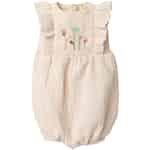 Wenn Sie Ihrem Größe 5 Maileg Häschen oder Kaninchen ein lässiges und dennoch stilvolles Outfit anziehen möchten, dann schauen Sie sich doch mal diesen bezaubernden Jumpsuit an. Der cremefarbene, ärmel- sowie hosenbeinlose Strampler ist mit einer bezaubernden Blumenstickerei und schicken Rüschen verziert. Dieser einteilige Anzug besteht aus weicher Baumwolle und kann bei 30 ° C in der Maschine gewaschen werden. Er ist Teil der wunderschönen Maileg Kleiderkollektion, die immer dafür sorgt, dass Ihr Hase oder Kaninchen stets gut gekleidet ist. Schauen Sie sich gerne mal die vielen Maileg Kleidungsstücke und Accessoires an, die wir in unserem Webshop anbieten. Sie werden das Spielen Ihres Kindes immens bereichern.