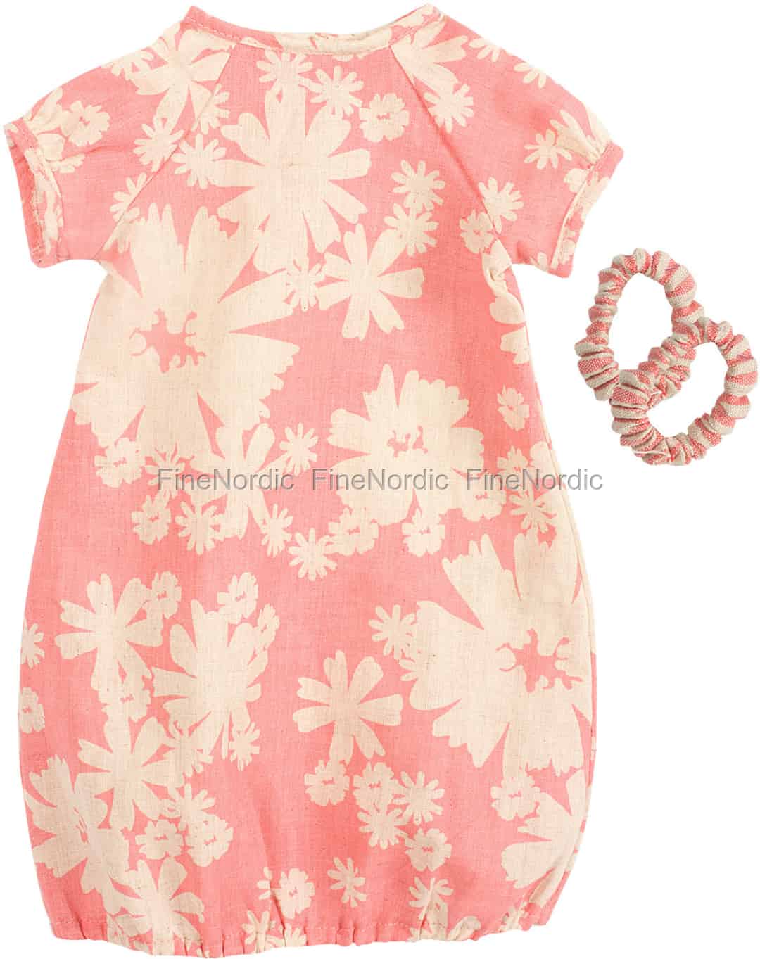 Kaninchen Kleidung - Mega - Coral dress with flowers - incl. 2 pcs Hair Elastics, von Maileg.