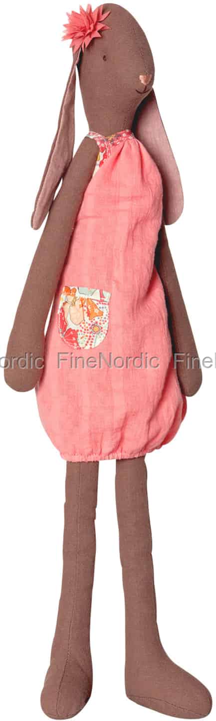 Das Maileg Kaninchen Fleurie trägt ein Lächeln auf den Lippen und eine Blume am Schlappöhrchen. Hübsch gekleidet ist sie auch und für jeden Schabernack bereit. Wenn es schönes Wetter ist, spielt sie am liebsten draußen, und an regnerischen Tagen gerne in Kinderzimmer. Wie wäre es mit Verkleiden spielen oder einer Tee Party? Sie mag auch gerne Geschichten vorgelesen bekommen und ganz viel Zeit mit einem lieben Menschfreund zu verbringen. Fleurie ist ein wundervoller Spielkamerad für die lieben Kleinen und dank der guten Maileg Qualität kann man sehr lange an ihr Freude haben, gerne auch über mehrere Generationen.