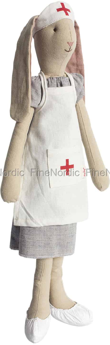 In einer Kaninchen Welt darf natürlich eine Krankenschwester nicht fehlen. Das Medium Krankenschwester Kaninchen kommt komplett ausstaffiert mit Kleid, Schürze, Haube und Schühchen. Pflaster mit lustigen Möhrchen Bildern hält sie auch immer für kleine Wehwehchen bereit und bei einer Erkältung gibt’s den leckeren Kohlrabi-Hustensaft, und schon bald ist der kleine langohrige Patient wieder ganz gesund. (Pflaster und Hustensaft sind frei erfunden und gehören nicht zum Lieferumfang.)