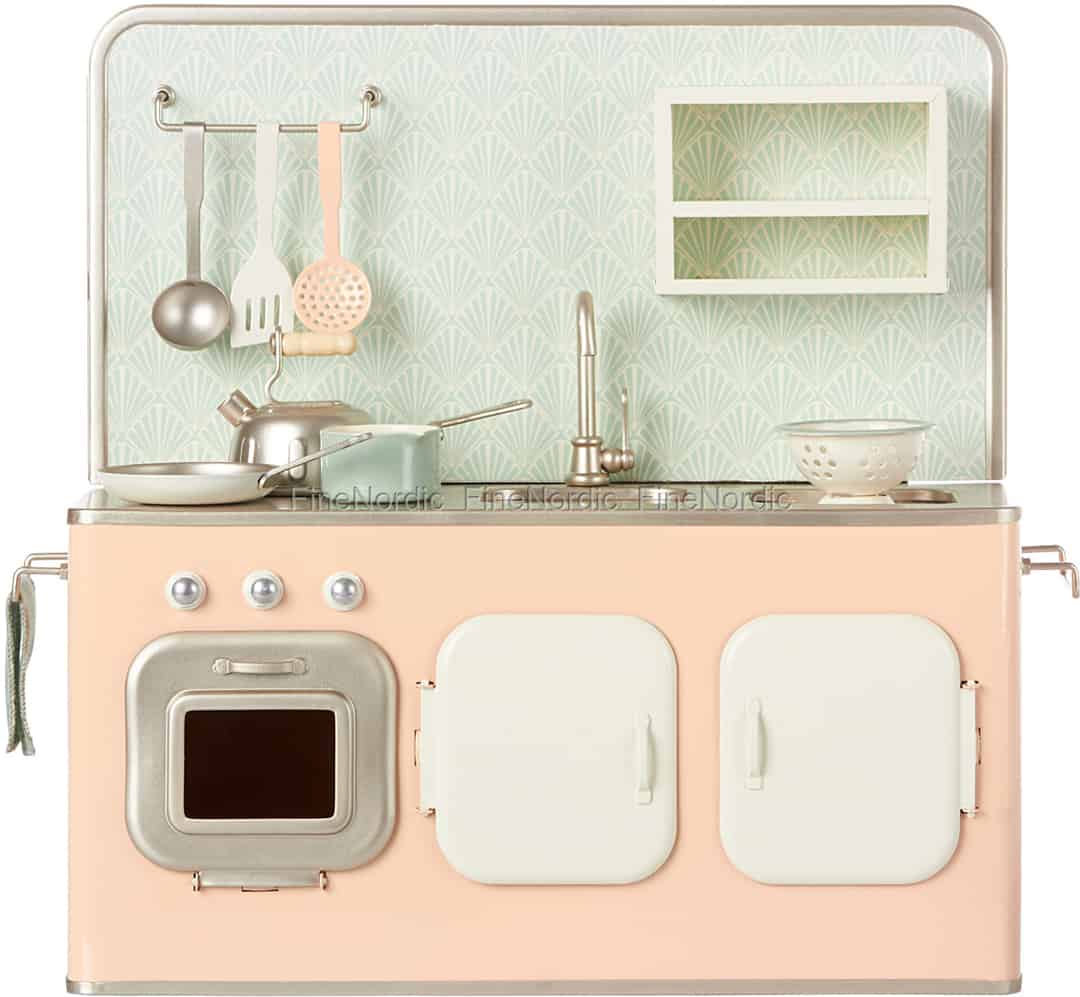Mailegs Metallküche Powder ist genau das, was jede Hasenfamilie und ihr kleiner Menschenfreund brauchen, denn hier können sie ihre Lieblingshäschenspeisen und Lieblingskuchen kochen, bzw. backen. In der Küche gibt es viele Accessoires: einen Wasserkocher, eine Pfanne, einen Topf, ein Geschirrtuch, ein Sieb, eine Kelle, einen Spatel und einen Schaumlöffel. All dies wird die Kreativität anregen und die Entwicklung der geistigen Fähigkeiten Ihres Kindes unterstützen, die in späteren Leben so wichtig sein werden. So macht diese Maileg Metallküche nicht nur zum Anschauen und Spielen Spaß, sondern sie ist auch lehrreich. Vielleicht kennen Sie ja ein kleines Kind, das gerne mit seinem Hasen in dieser Küche spielen würde? Die Metallküche Powder von Maileg ist ein wunderbares Weihnachts- oder Geburtstagsgeschenk für einen kleinen Maileg Liebhaber.