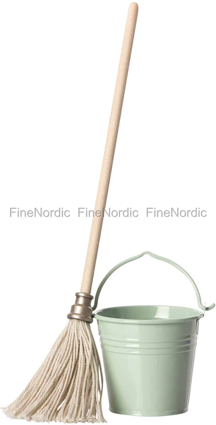 Mit Maileg kann man stundenlang Spaß beim Spielen haben, aber dann kommt auch ein Punkt, an dem man aufräumen und alles wieder sauber machen muss. Zu dem Zeitpunkt können die Maileg Freunde dieses Eimer und Mopp Set wirklich gut gebrauchen, damit sie schnell allen Dreck beseitigen können. Der Eimer mit Mopp ist ideal für Maileg Freunde im MINI Format. Damit ist das Aufräumen in nur kürzester Zeit erledigt und dann warten weitere Stunden mit Spaß und Spiel auf Sie. Schauen Sie sich doch bitte mal die große Auswahl an Maileg Accessoires an, die wir in unserem Webshop anbieten. Sie regen die Fantasie und Kreativität Ihres Kindes an und machen das Spielen noch lustiger und interessanter.