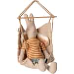 Dieser Micro Hängestuhl von Maileg bietet den Kaninchen einen Ort zum Entspannen und zum einfachen Hin- und Herschwingen. Er kommt mit einer kleinen Decke, sodass der Sitz besonders warm und gemütlich bleibt. Daran ist ein kleiner Haken befestigt, mit dem Sie ihn überall aufhängen können. Der Hängestühl besteht aus Leinen und ist eine schöne Alternative zu einem normalen Stuhl oder einer Bank. Schauen Sie sich gerne mal die vielen verschiedenen Möbel und Accessoires von Maileg an, die wir in unserem Webshop anzubieten haben.