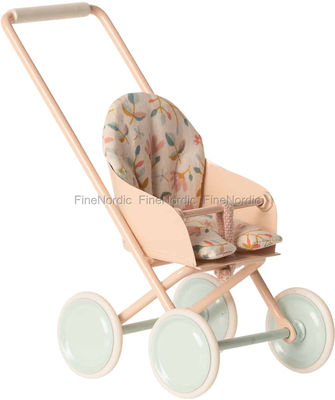 Schauen Sie sich doch mal diesen schönen Micro Kinderwagen Powder von Maileg an. Er kann für viele Maileg Freunde verwendet werden und Ihr Kind kann ihn kreuz und quer durch das Zuhause schieben und dabei viel Spaß haben. Sein wunderschönes Design im Vintage Look sieht einfach cool aus und der bequeme Stoffsitz mit Blumenmuster verleiht ihm noch den letzten Schliff. Der Kinderwagen ist auch in den Farben Sky Blue und Soft Coral erhältlich. Sie finden sie alle direkt hier in unserem Webshop.