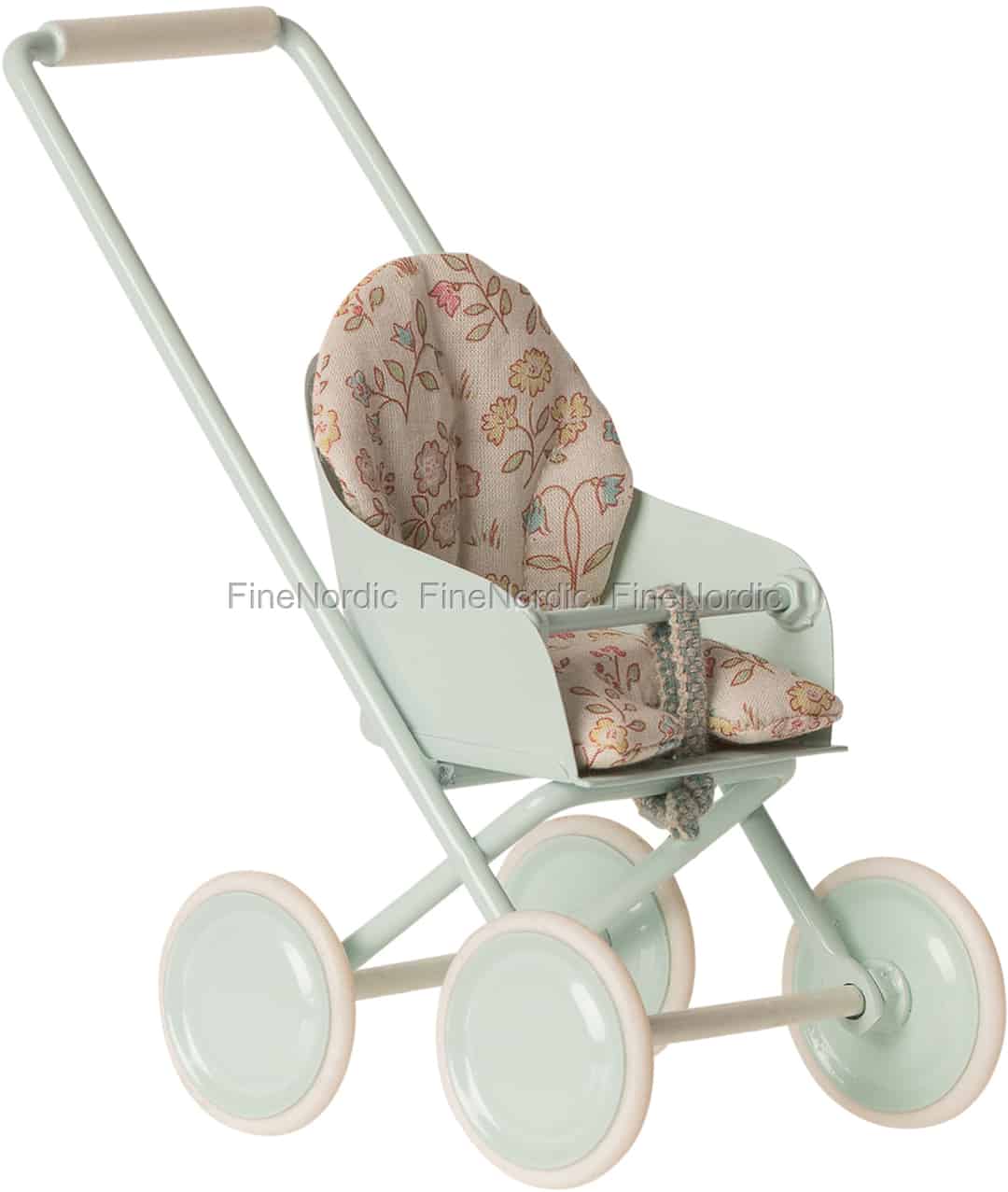 Schieb Deine Lieblings-Maileg-Freunde mit dem Micro Kinderwagen Sky Blue von Maileg kreuz und quer durch das Kinderzimmer oder einfach genauso wie Du Lust hast. Die himmelblaue Farbe des Kinderwagens passt gut zum blumigen Design des Stoffsitzes. Dieser Kinderwagen im Vintage Stil ist auch in einer Powder und Soft Coral Version erhältlich. Wir wünschen Dir viel Spaß beim stundenlangen Herumschieben Deines Mikrohäschens, von A nach B und wieder zurück. Bitte schau Dir auch gleich all das andere Kaninchenzubehör an, das wir zur Verfügung haben. Es bereichert die Spielzeit und lässt alles noch authentischer und realistischer erscheinen.