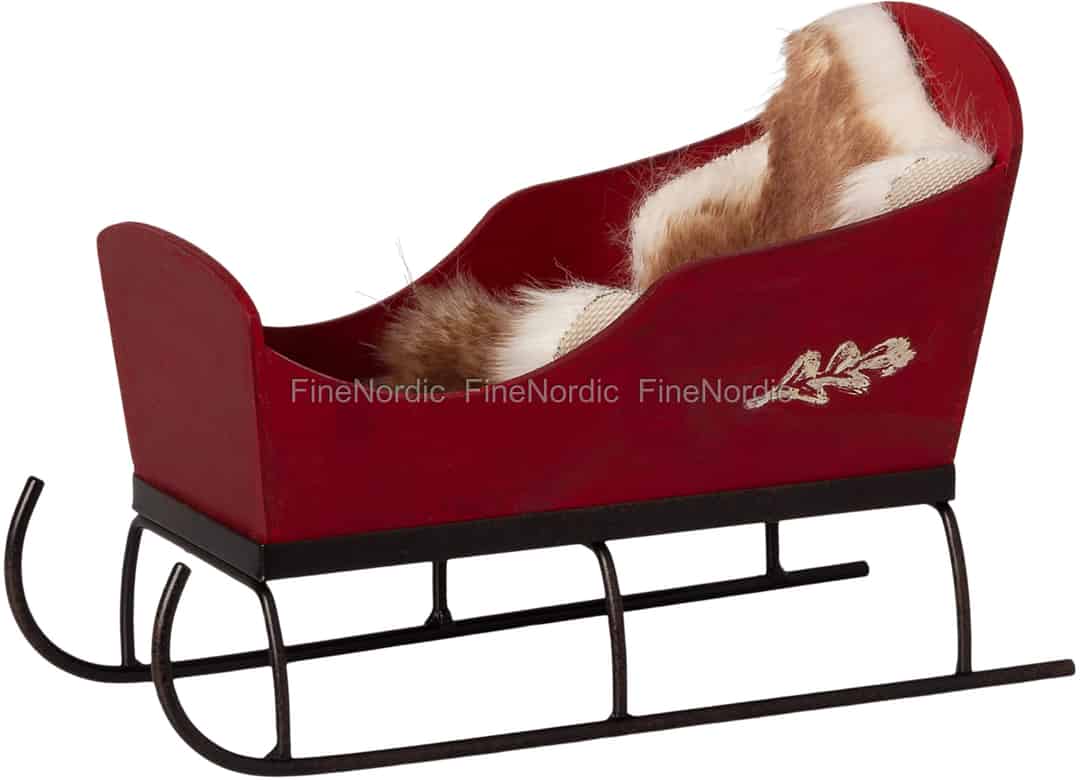 Dieser gut aussehende Schlitten von Maileg ist ein wunderschöner Dekoartikel für die Weihnachtszeit. Der Schlitten ist aus Metall und Holz gefertigt und wir mögen seine schöne weihnachtliche rote Farbe. Es wird mit einer kuscheligen Decke geliefert, damit es jedem Häschen warm und bequem ist, welches sich darauf setzen darf. Stellen Sie ihn auf die Fensterbank, die Anrichte oder den Esstisch und schon wird er zu einem wahren Hingucker im Raum. Füllen Sie ein mit ein paar leckeren, eingepackten Köstlichkeiten und stellen Sie ihn auf das Weihnachtsbuffet und Ihre Gäste werden begeistert sein. Schauen Sie sich gerne mal die große Auswahl an Maileg Weihnachtsschmuck an, welche wir in unserem Webshop anbieten.