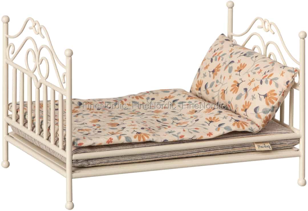 Die Maileg Kaninchen lieben es zu spielen und Spaß zu haben, aber sie gehen auch gerne abends ins Bett, damit sie gut schlafen können und am nächsten Morgen ausgeruht sind. Also, zum Beispiel in genau so einem bequem aussehenden Bett wie dieses für die Micro Kaninchen. Die Bettwäsche besteht aus einem wunderschönen, mit Maileg bedruckten Stoff und kann variieren. Das weiche sandfarbene Vintage Metallbett sieht einfach zu einladend aus und das müde Micro Kaninchen schläft ganz schnell darin ein. Es ist auch ein hübsches Geburtstagsgeschenk für einen kleinen Micro Kaninchenbesitzer.