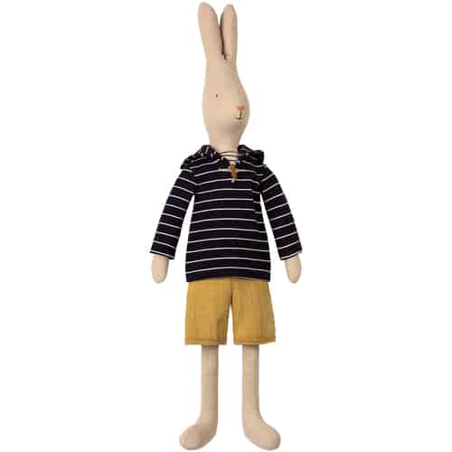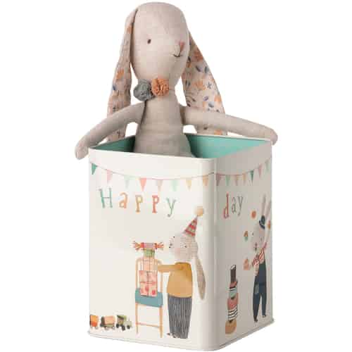Entdecken Sie Mailegs wunderbare und einzigartige Kaninchen Welt! Maileg Kaninchen zum Phantasie Anregen und Liebhaben, Maileg Kaninchen zum Sammeln und Maileg Kaninchen zum Verschenken. Maileg Kaninchen sind einfach tolle Freunde für die gesamte Kindheit und dank der exzellenten Maileg Qualität, werden Ihre lieben Kleinen viele Jahre Freude an ihnen haben. Kaninchen in den Größen: My, Micro, Mini, Medium, Maxi, Mega und Mega Maxi finden Sie hier. Dazu passend gibt es tolle Möbelstücke wie Bettchen, Bänke, Tische, Hochstühle und Wiegen, in denen die Häschen schlafen, sitzen, lachen und lange Unterhaltungen mit Ihren kleinen Menschenfreunden führen können. Damit sich die Maileg Hasen für jedes Spielabenteuer passend kleiden können, bieten wir außerdem eine gewaltige Auswahl an detaillierten, und mit viel Liebe kreierten Kleidungsstücken in den verschiedenen Häschen Größen an. Reizende Schühchen, kuschelige Strickpullover, bezaubernde Blumenkleidchen, farbenfrohe Höschen, bequeme Schlafanzüge, Jeans, Strickmützen und Hüte. Süße kleine Mode-bewusste Spielfreunde für ihre kleinen Lieben.