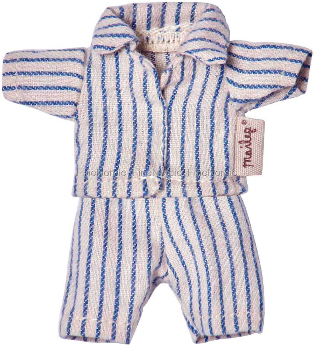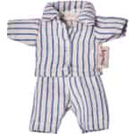 Auch die Micro Kaninchen müssen irgendwann mal schlafen gehen und das am besten hübsch gekleidet in attraktiven blau-gestreiften Micro Pyjama von Maileg. Hemd und Hose sind schnell angezogen und schon ist es Zeit fürs Heiabettchen. Aber vor dem Einschlafen wird schnell noch eine Gute Nacht Geschichte erzählt und auch ein Gute Nacht Lied gesungen und dann heißt es Augen zu und schlafen. Der gestreifte Maileg Micro Pyjama hält das Micro Kaninchen die Nacht über schön warm, so dass es nach getaner Nachtruhe gut ausgeschlafen in den neuen Tag starten kann.