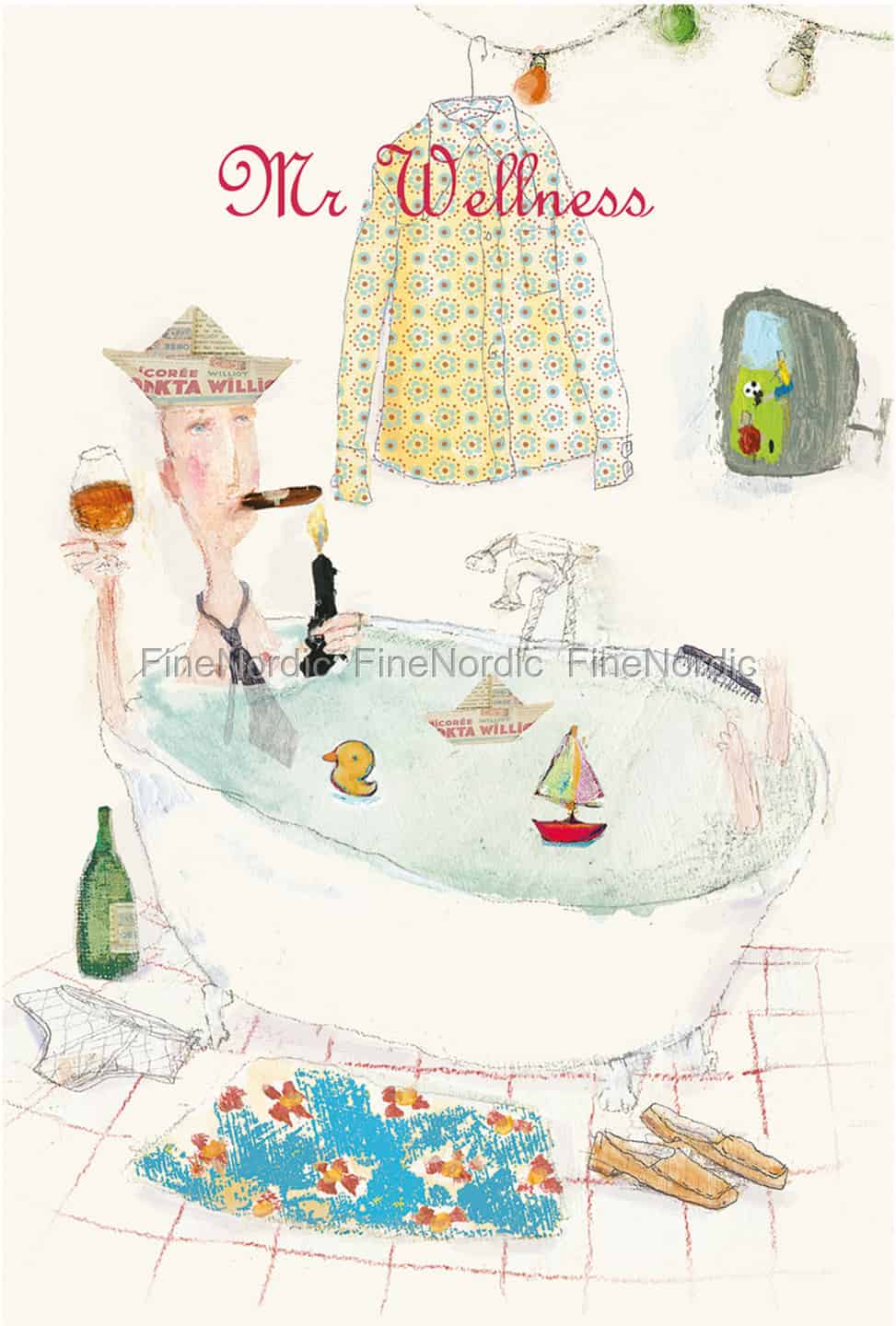 Hübsche Karte mit Umschlag, süßem Motiv und Aufdruck "Mr. Wellness" von Maileg.
