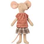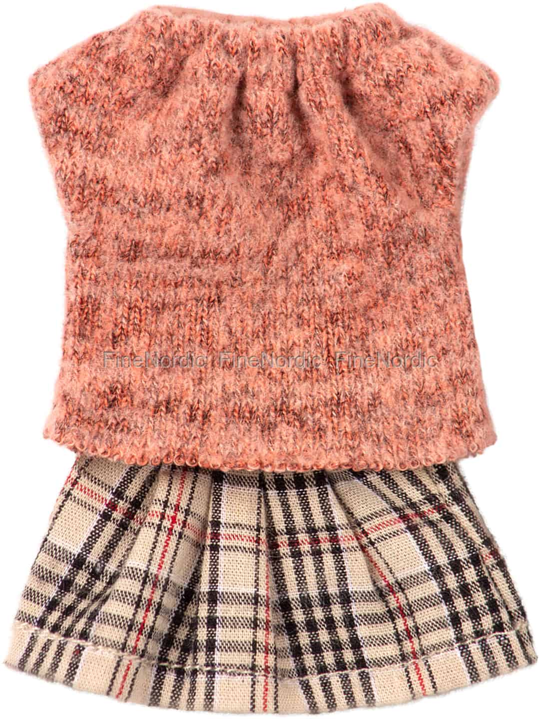 Maileg Mama Maus rennt nicht nur den ganzen Tag hinter den Kindern her, backt Karotten Muffins und zaubert köstliche Abendessen daher, sie sieht auch gerne jederzeit präsentabel aus. Dieses gut aussehende Set aus Pullover und kariertem Rock wird ihr sicherlich dabei helfen. Es sieht jedoch nicht nur fantastisch aus, es ist auch leicht zu reinigen. Alles, was Sie tun müssen, ist, es in die Waschmaschine zu werfen und es bei 30 ° C zu waschen, und schon bald kann Mama Maus wieder so präsentabel wie immer aussehen.