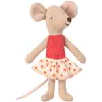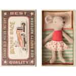 Mailegs Kleine Schwester Maus in Box 2019 scheint es in ihrer kleinen Streichholzschachtel ganz gemütlich zu haben. Sie trägt einen gepunkteten Rock, der einen schönen Kontrast zu dem gestreiften Bettzeug in der Schachtel darstellt. Sie liebt es, tagsüber zu spielen und Spaß zu haben, und nachts kriecht sie in ihre bequeme Streichholzschachtel zurück, und schon bald darauf kann man ein leichtes Schnarchen aus der Box dringen hören. Diese Kleine Schwester Maileg Maus ist auch ein schönes Geschenk für einen kleinen Maileg Fan.