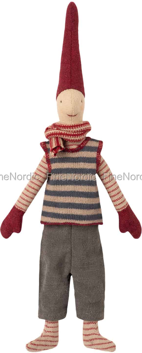 Dieser Maileg Kletterwichtel 2018 A mit magnetischen Händen ist ein sehr gut aussehender kleiner Kerl. Der 26 cm große Wichtel liebt es, an einem Ast, einer Leiter, oder einem Regal zu hängen. Drücken Sie einfach seine beiden Hände aneinander und die Magnete halten sie zusammen. Dieses Kletterwichtel trägt einen spitzen roten Hut, einen blau gestreiften Pullunder und graue Hosen. An Armen und Beinen sehen Sie rote gestreifte Ärmel und Strümpfe. Er hat rote Handschuhe an und an seinem Hals trägt er einen rot gestreiften Schal. Dieses Maileg Kletterwichtel ist eine schöne Weihnachtsdekoration und auch eine tolle Geschenkidee für einen Maileg-Liebhaber.