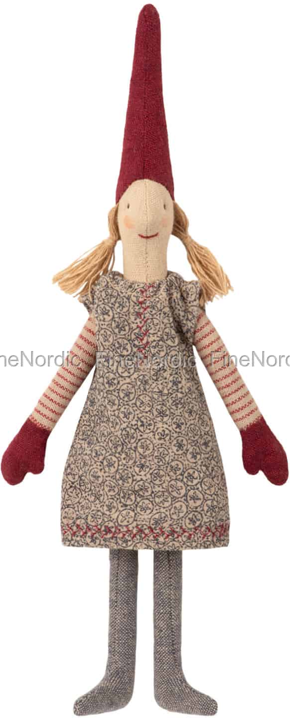 Der Maileg Kletterwichtel mit den magnetischen Händen 2018 D ist ein bezaubernd aussehendes kleines Wichtelmädchen. Sie trägt ein Kleid, das mit einem sehr attraktiven Muster geschmückt ist, und dazu einen roten Wichtelhut und rote Handschuhe. Klettern ist das, was dieses kleine Wichtelmädchen am meisten liebt, und ihre magnetischen Hände sind dabei sehr hilfreich. Sie braucht nur ihre Hände zusammen zu legen und schon halten die Magnete diese fest. Das vereinfacht es sehr in einem Baum von Ast zu Ast zu steigen und auf einer Leiter von Sprosse zu Sprosse zu gelangen. Manchmal sitzt sie aber auch einfach nur so da herum und schaut dem Geschehen rundumher zu. Sie bevorzugt eine schöne Fensterbank, weil sie dort auch sehen kann, was draußen passiert. Aber sie liebt es auch, auf einem Kaminsims zu hocken und das vor allem in Winter, weil es dort oben dann so schön warm und gemütlich ist. Dieser Maileg Kletterwichtel mit magnetischen Händen 2018 D ist eine schöne Weihnachtsdekoration und auch eine tolle Weihnachtsgeschenkidee für einen Maileg Sammler.