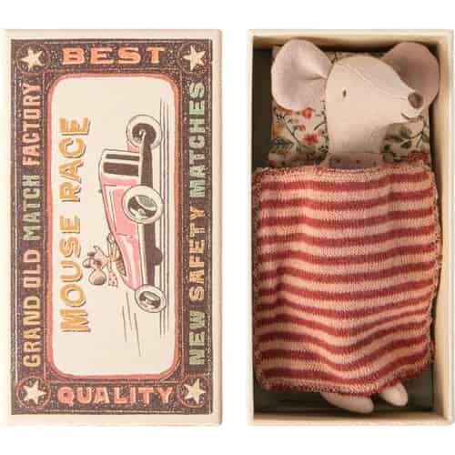 Hier finden Sie die süßen Maileg Mäuse zum Spielen und Sammeln. Die kleinen Stoffmäuschen sind exzellente Spielkameraden und Einschlafhelfer zum Kuscheln und Liebhaben. Sie wurden mit viele Liebe zum Detail kreiert und dank Ihrer guten Qualität werden Ihre lieben Kleinen lange Freude an Ihnen haben. Wie wäre es mit einer kleinen Maus in passender Streichholzschachtel mit Decke, Kissen und Matratze für den Nachttisch oder für unterwegs? Ein kleiner Maileg Mäuschenengel als Geschenk zur Geburt oder zur Taufe? Die süßen Mäuse sind wunderbare Geschenke für liebe Freunde und Familie und natürlich ganz besonders für die eigenen geliebten Sprösslinge.