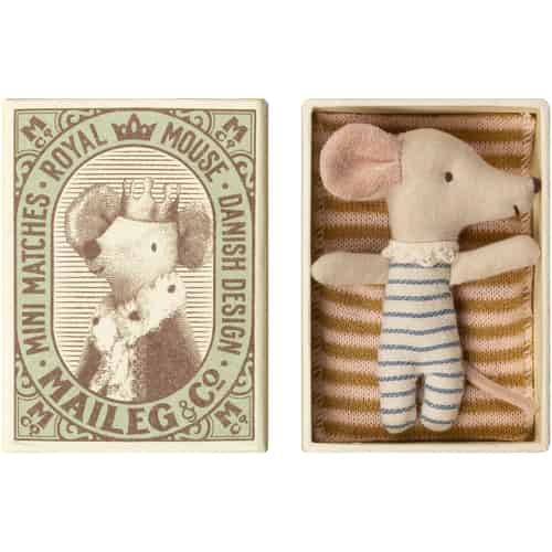 Hier finden Sie die süßen Maileg Mäuse zum Spielen und Sammeln. Die kleinen Stoffmäuschen sind exzellente Spielkameraden und Einschlafhelfer zum Kuscheln und Liebhaben. Sie wurden mit viele Liebe zum Detail kreiert und dank Ihrer guten Qualität werden Ihre lieben Kleinen lange Freude an Ihnen haben. Wie wäre es mit einer kleinen Maus in passender Streichholzschachtel mit Decke, Kissen und Matratze für den Nachttisch oder für unterwegs? Ein kleiner Maileg Mäuschenengel als Geschenk zur Geburt oder zur Taufe? Die süßen Mäuse sind wunderbare Geschenke für liebe Freunde und Familie und natürlich ganz besonders für die eigenen geliebten Sprösslinge.