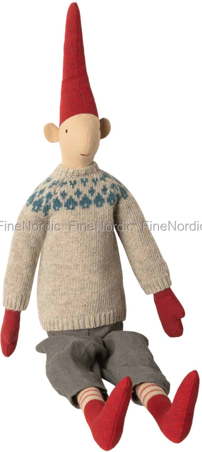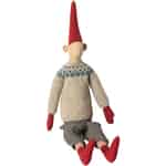 Mailegs Maxi Weihnachtswichtel Lars 2019 hat einen warmen Pullover und eine warme Hose an und auf seinem Kopf trägt er seinen spitzen, roten Wichtelhut. Er hat ein süßes Lächeln im Gesicht und sein Lieblingswichtel ist der Maileg Maxi Weihnachtswichtel Laura 2019. Er sitzt gern mit ihr zusammen auf der Couch, wo sie über alle Weihnachtsvorbereitungen sprechen, die noch vor dem großen Tag erledigt werden müssen. Die zwei sind für jedes Zuhause eine entzückende Weihnachtsdekoration.
