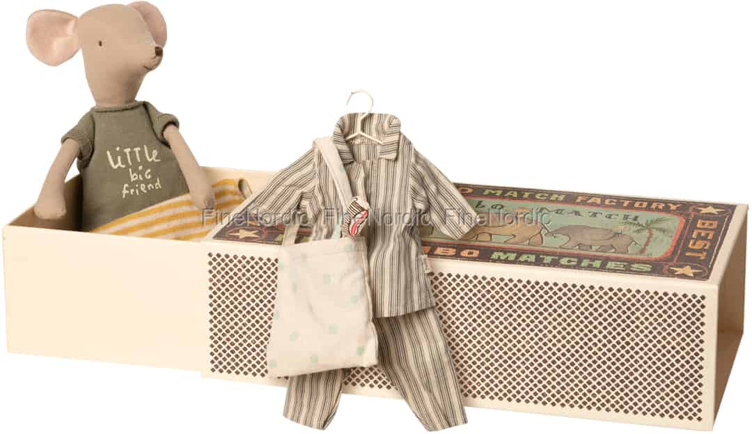 Maileg Medium Maus in eine Streichholzschachtel - Junge inkl Sleep-Over Set