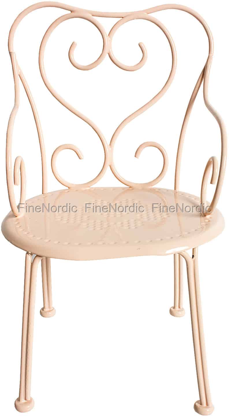 Die Maileg Kaninchen lieben es um die Wette zu hoppeln, zu spielen und zu lachen, aber ab und zu braucht auch ein Kaninchen mal eine Pause. Auf dem Metall Stuhl Mini Powder kann man sich gut ausruhen, egal ob er in Garten, auf der Terrasse oder in Kinderzimmer platziert ist. Schön wäre es, wenn man dazu auch noch den passenden Kaffeetisch in Powder hätte, denn so kann man nicht nur pausieren, sondern dabei auch einen leckeren Kaffee oder Möhrensaft genießen. Der elegante Metallstuhl von Maileg erinnert ein wenig an ein romantisches, französisches Straßencafé wo ein Kaninchen gerne mal für paar Minuten einkehrt, ein Croissant de Carotte genießt und kurz Energie tankt, bevor es weitere Spielabenteuer zu erleben gibt.