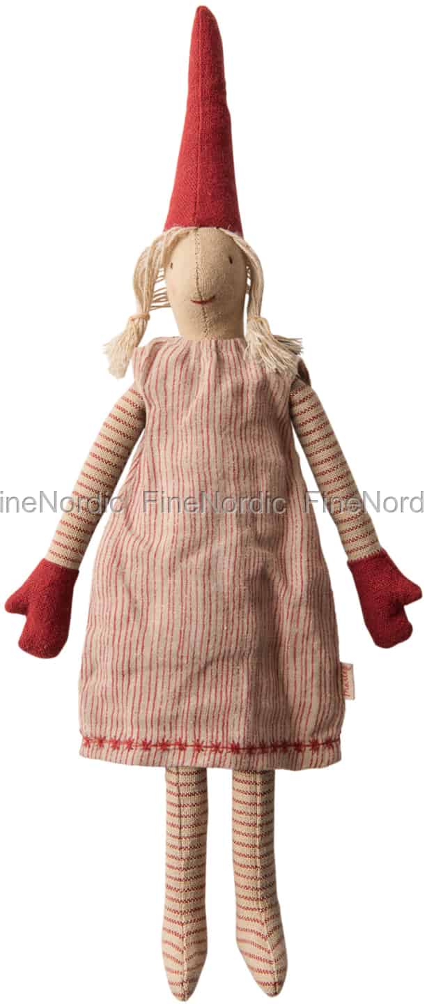 Sind Sie ein Maileg Wichtel Sammler? Das Beste daran ist ja, dass Sie Ihre Sammlung jedes Jahr um neue erweitern können. Schauen Sie sich doch mal diesen entzückenden Mini Wichtel 2019 D an. Wir lieben ihr hübsches rot gestreiftes Kleid und ihren roten Wichtelhut. Sie trägt ein süßes Lächeln im Gesicht und trägt ihre Haare in Zöpfen. Stellen Sie sie auf den Kamin, die Fensterbank oder die Anrichte und schon kommt etwas Weihnachtsstimmung auf. Sie können sie alleine, oder zusammen mit ihren Mini Pixy Freunden, zur Schau stellen. Entdecken Sie sie all die wunderbaren Maileg Weihnachtswichtel direkt hier in unserem Webshop.