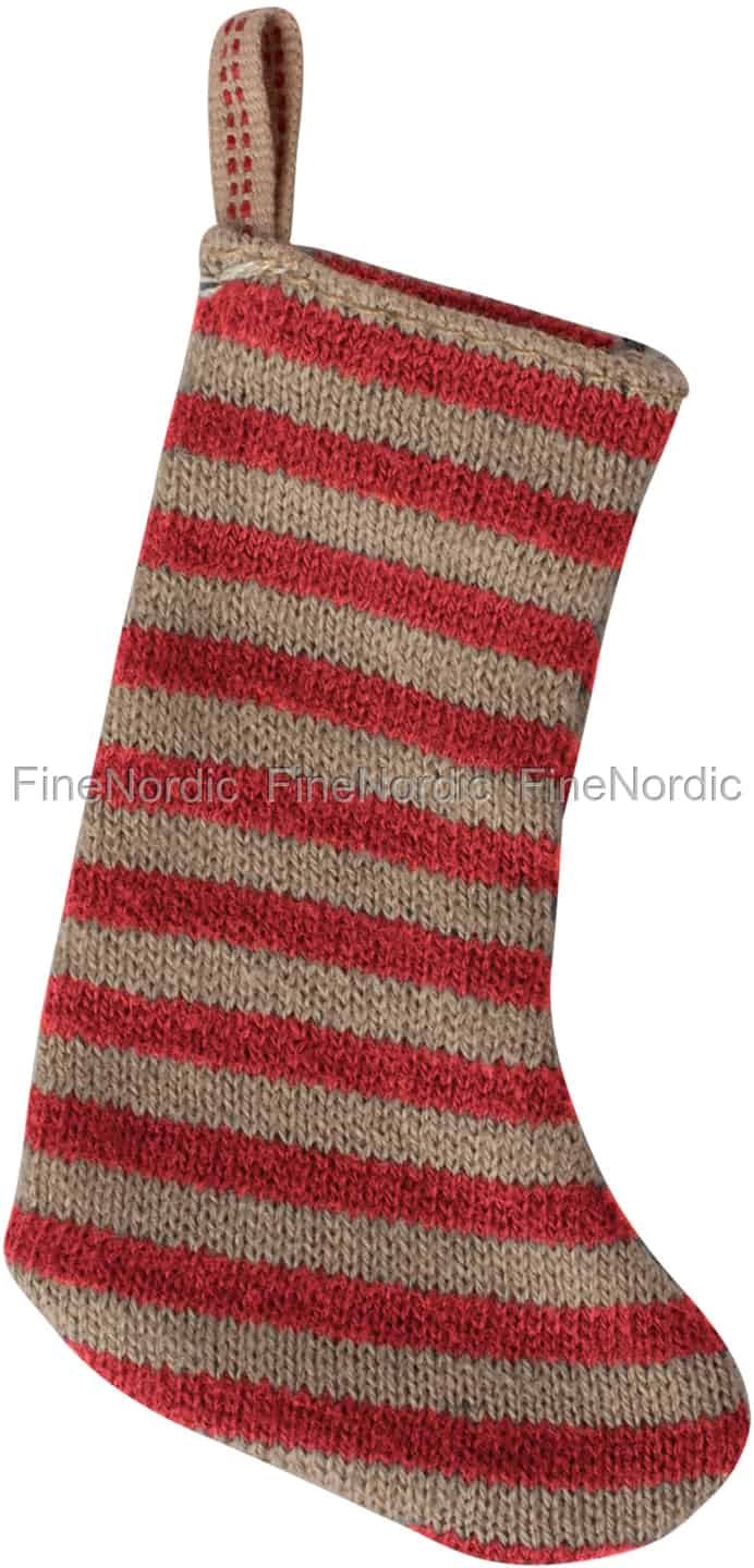 Hier online kaufen, Miniatur Weihnachtsstrumpf für Puppenhaus - Rot/Sand, von Maileg.