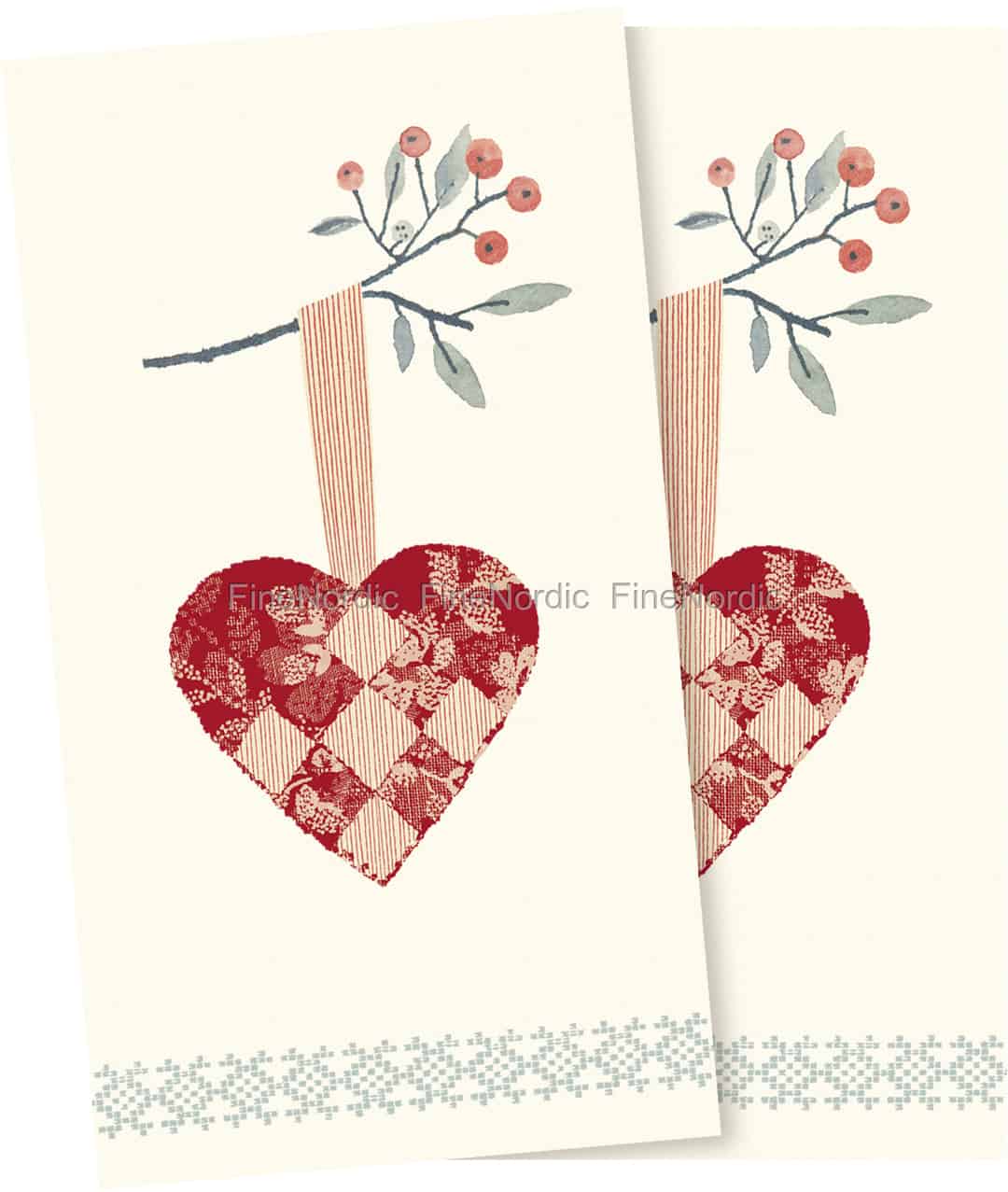 Mit diesen hübschen Christmas Heart Papierservietten von Maileg kann an Weihnachten der Esstisch festlich gedeckt werden. Sie kommen in einer 16er Packung und auf jeder ist ein geflochtenes Herz, das an einem Zweig hängt, zu sehen. Geflochtene Herzen sind Teil der dänischen Weihnachtstradition und man sieht sie in der Weihnachtszeit überall hänge: Am Weihnachtsbaum, an einem Weihnachtskranz und auch in den Fenstern. Entlang der unteren Kante der Serviette ist ein hübsches Muster zu sehen, das wie ein Kreuzstichmuster aussieht. Das Servietten Set ist auch eine schöne Gastgeschenkidee, wenn Sie während der Weihnachtszeit zum Abendessen bei einem Freund oder Freundin eingeladen sind.