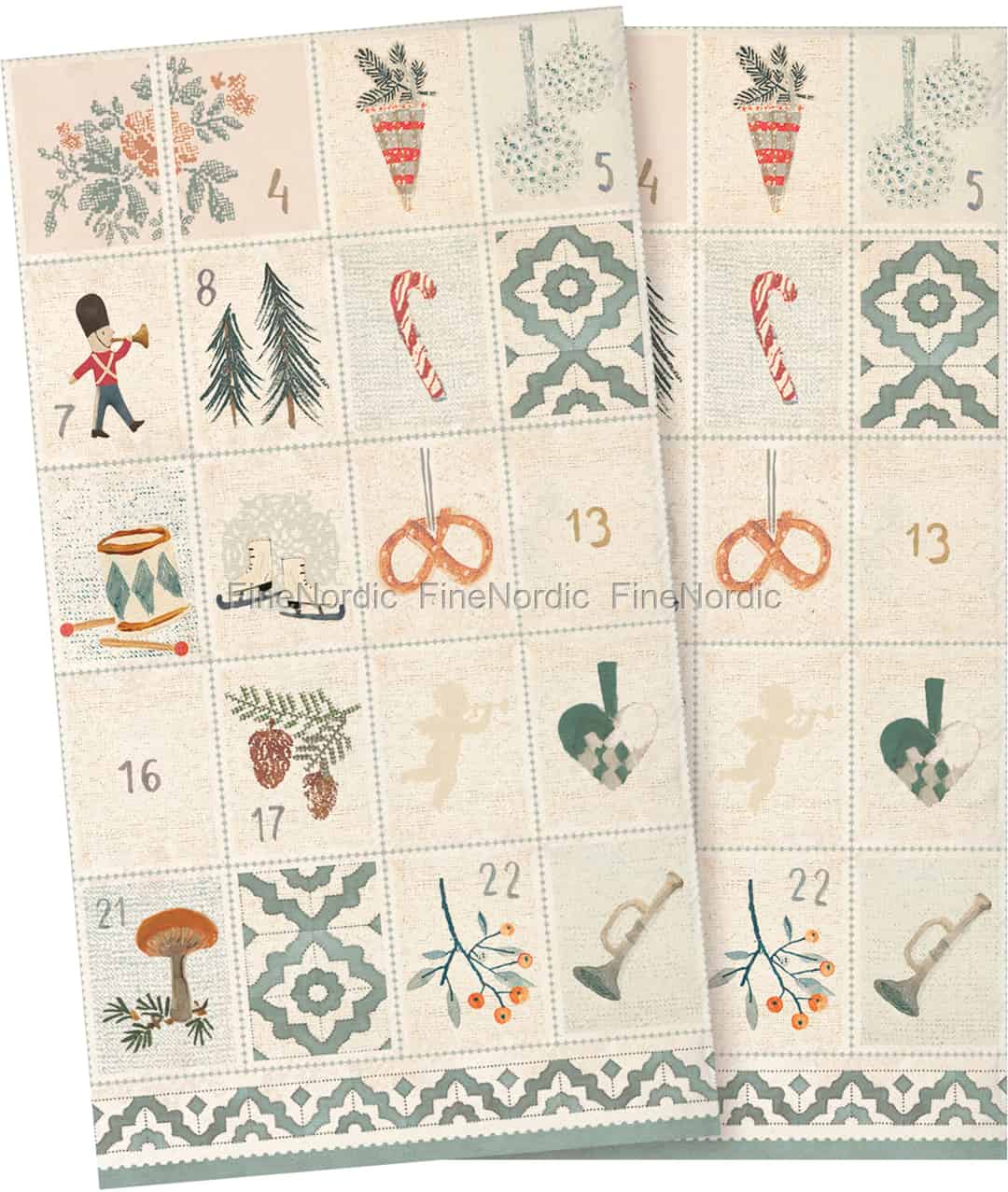 Die Days of December Servietten von Maileg geben einem festlich gedeckten Tisch den letzten Schliff. Sie kommen in einer 16er Packung und sind mit verschiedenen Maileg Weihnachtsmalereien geschmückt. Sie können alles von einer Zuckerstange bis zu einem Paar Schlittschuhen sehen. Jede Serviette misst im gefalteten Zustand 11 cm x 20 cm. Dieses Serviettenset ist auch ein schönes Weihnachtsgeschenk für einen Maileg Fan.