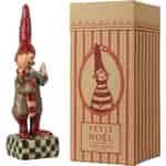 Mailegs Petit Noël No. 19 Figur ist ein entzückender kleiner Wichteljunge, der gerne Weihnachtslieder singt. Der Weihnachtswichtel hält das Gesangbuch in den Händen und sein Mund ist geöffnet, während er singt. Er trägt einen roten Zipfelhut, einen rot gestreiften Schal, eine lange Jacke und rote Handschuhe und Stiefel. Er steht auf einem grün karierten Podest und ist total auf das Singen konzentriert. Fügen Sie ihn Ihrer eigenen Maileg Sammlung hinzu oder verschenken Sie ihn als Weihnachtsgeschenk an einen Maileg Sammler. Er wird in einer schönen Maileg Geschenkbox geliefert.