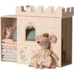 Es war einmal ... so beginnen die meisten guten Märchen. Dieses Maileg Spielset wurde von der berühmten Märchenprinzessin auf der Erbse inspiriert. Es umfasst eine Papppapierschloss mit Matratzen, einer Erbse und einer Prinzessinnen Maus. Die Große Schwester Prinzessinnen Maus trägt ein wunderschönes Prinzessinnenkleid und auf Ihrem Kopf thront ihre Prinzessinnenkrone. Obwohl sie jede Nacht auf einem hohen Stapel Matratzen schläft, kann sie, wenn sich nur eine kleine Erbse darunter befindet, kein Auge zu tun. Dieses Spielset ist eine schöne Geschenkidee für einen kleinen Maileg Liebhaber.
