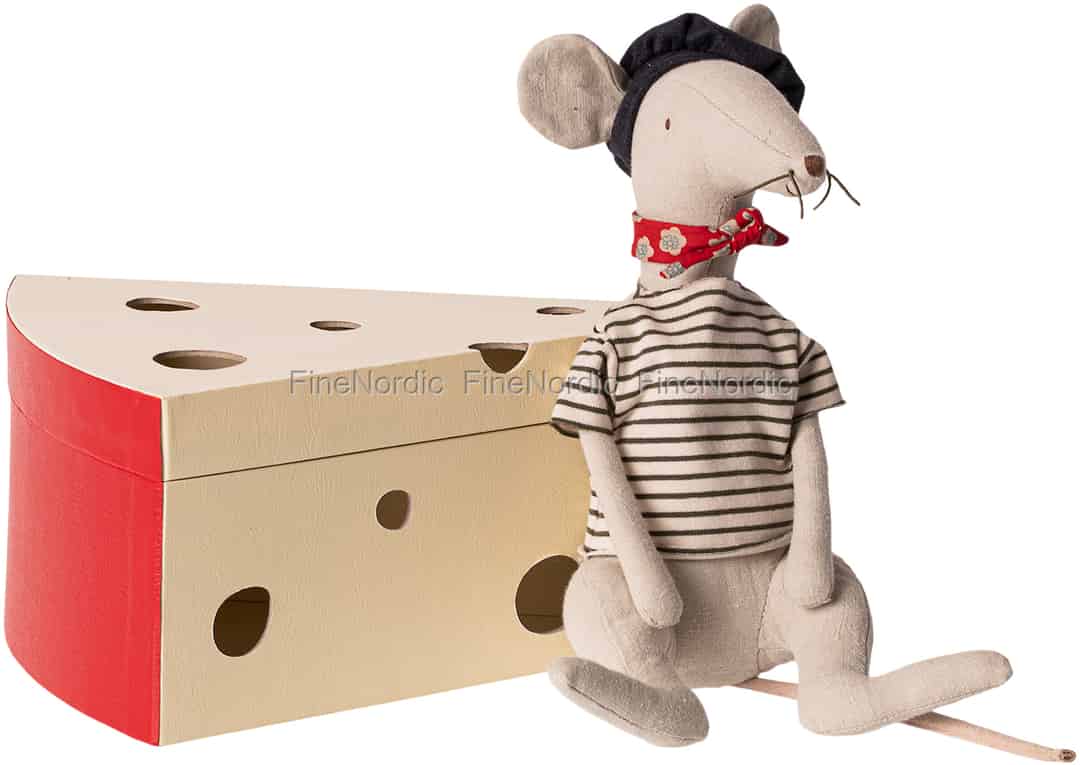 Die Maileg Ratte in Hellgrau in der Käseschachtel zieht sich gerne gut an und ist immer auf dem neuesten Stand der Pariser Modetrends. Das Rattenmännchen trägt ein schickes, gestreiftes Hemd, hat einen hübschen Schal um den Hals gewickelt und auf seinem Kopf kann man seine Lieblingskappe sehen. Die trägt es jeden Tag und verlässt nie ohne sie seine Käseschachtel. Er mag es, mit seinem Freund der grauen Ratte, abzuhängen und gemeinsam eine köstliche Crème Brûlée zu schlecken. Er ist ein wunderbarer Spielgefährte für einen kleinen Jungen oder ein kleines Mädchen und ist auch ein tolles Geburtstags- oder Weihnachtsgeschenk.