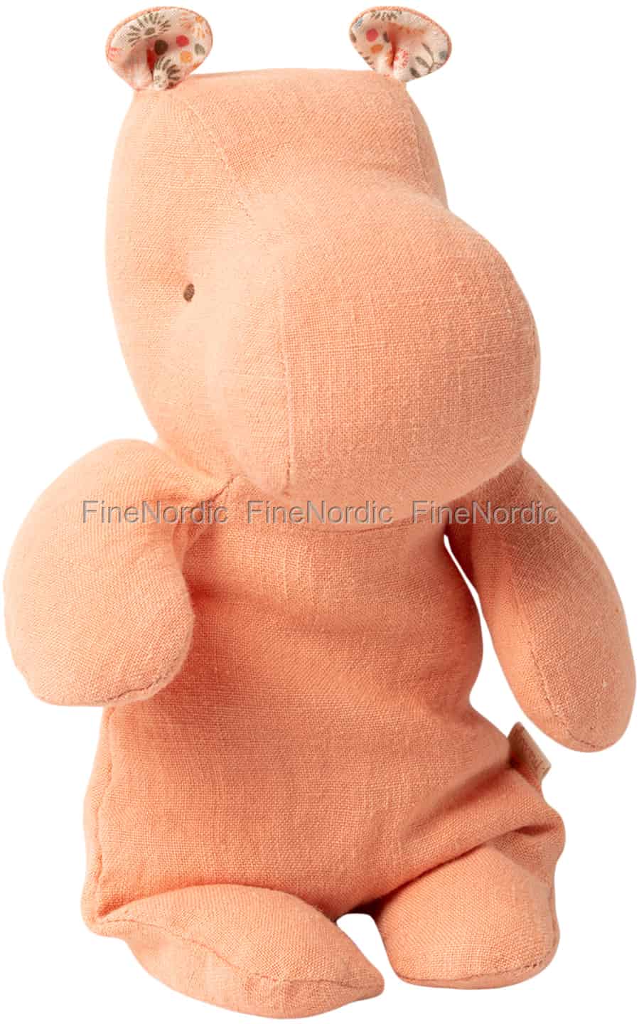 Wir sind uns nicht sicher, was wir an diesem kleinen Nilpferd am meisten mögen. Seine wunderschöne Aprikosenfarbe oder seine süßen kleinen, mit Blumen bedruckten Öhrchen? Dieses kleine Nilpferd kann ganz alleine sitzen, aber am allerliebsten kuschelt es oder spielt es gerne. Das Hippo ist ein toller Begleiter und Spielgefährte für einen kleinen Jungen oder ein kleines Mädchen. Das orangefarbene Nilpferd besteht aus weichem Leinen und kann bei 30 C in der Maschine gewaschen werden, falls es beim Spielen im Freien mal schmutzig werden sollte. Dieses Stofftier ist ein Teil der Maileg Safari Freunde Serie und es ist ein sehr schönes Geschenk für einen kleinen Lieblingsmensch.