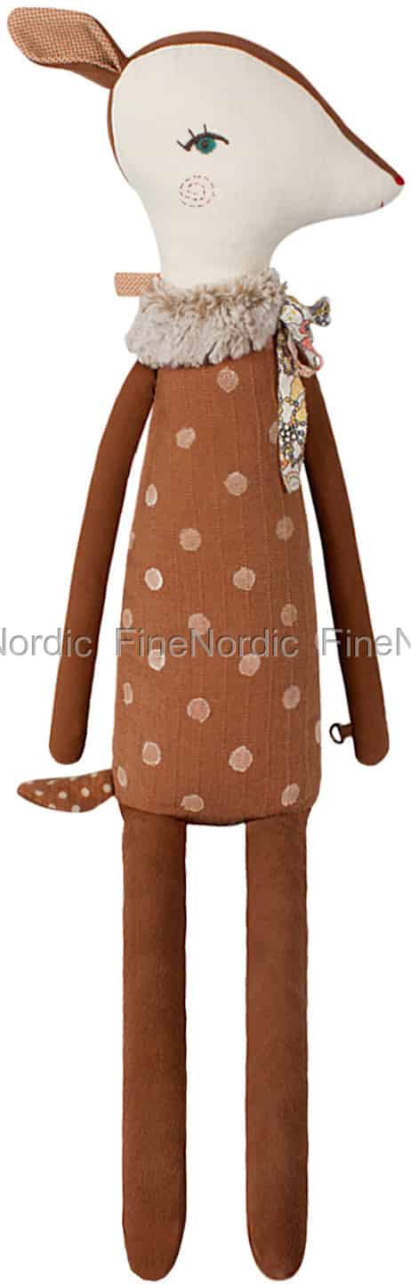 Schläft Bambi oder ist er wach? Das kommt ganz darauf an, auf welcher Seite das putzige Rehlein von Maileg liegt. Auf der einen Seite hält es das Auge geschlossen, auf der anderen Seite schaut es seinem kleinen Besitzer erwartungsvoll entgegen. Das 81 cm große Kuschelkitz, mit seinem drolligen Fellschal und den lustigen Punkten auf seinem Körper ist einfach nett anzuschauen. Mailegs Sleepy-Wakey Mega Bambi ist ein wahres Multitalent: Es dient als Dekoration für das Kinderzimmer, als Spielgefährte eines lieben Menschenkinds oder als Geburtstags- oder Weihnachtsgeschenk. Egal für was es verwendet wird, dank Mailegs guten Qualität kann man sich auf jeden Fall viele Jahre daran erfreuen.