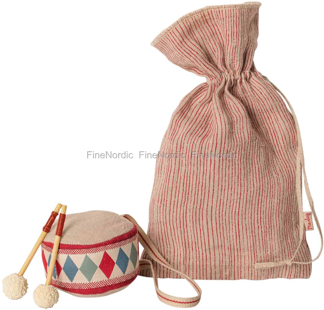 Die entzückende Maileg Trommel und die Trommelstöcke werden in einem hübschen, gestreiften Beutel geliefert. Sie sind als Dekoration gedacht und Sie können sie allein wo hinlegen, oder sie zu einem Kletter- oder Winter Friend Wichtel hinzufügen, denn diese können die Trommelstöcke mit ihren magnetischen Händen halten. Schauen Sie sich gerne mal die vielen Maileg Weihnachtsdeko Artikel und Weihnachtsbaumornamente an, die wir in unserem Webshop anzubieten haben. Kombiniere Sie sie miteinander und erstellen Sie so Ihre ganz persönliche Weihnachtsschmuck Sammlung.