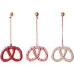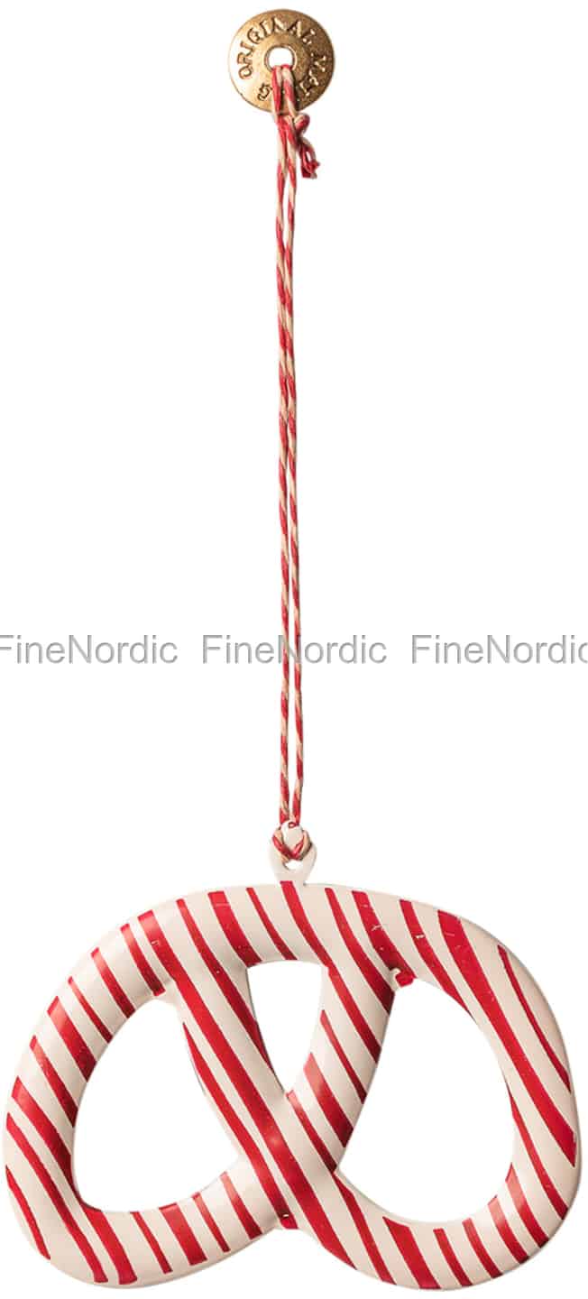 Wie wäre es mit einer Brezel am Weihnachtsbaum? Ja, warum eigentlich nicht? Vor allen Dingen, wenn es sich um eine so hübsche Brezel wie die Brezel 2019 B von Maileg handelt. Das rot-weiß gestreifte Metallornament hat die perfekte Brezelform und ist an einer rot-weißen Schnur befestigt. Hängen Sie den Weihnachtsanhänger an einen Weihnachtskranz oder vielleicht an den Kaminsims im Wohnzimmer und verbreiten Sie etwas Weihnachtsstimmung im Raum. Sie können die Brezel ganz alleine oder zusammen mit den beiden anderen 2019er Brezeln von Maileg aufhängen, welche Sie auch in unserem Webshop finden können. Schauen Sie sich hier gerne mal die große Auswahl an Maileg Weihnachtsornamenten aus Metall und Stoff an, die wir vorrätig haben.
