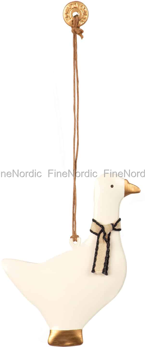 Der Weihnachtsschmuck Gans 2019 Black von Maileg ist aus Metall gefertigt und handbemalt. Die Gans hängt an einer Schnur, mit der es ganz einfach ist, sie an einem Zweig oder einem Haken anzuhängen. Die Gans hat einen kleinen Stoffschal um den Hals, der schwarz umrandet ist. Hängen Sie sie an den Weihnachtsbaum oder als kleine extra Überraschung an ein schön verpacktes Weihnachtsgeschenk. Schauen Sie sich gerne mal all die wundervollen Maileg Ornamente an, die wir zur Verfügung haben. Sie sind sowohl aus Metall als auch aus Stoff gemacht und damit können Sie Ihre eigene Maileg Weihnachtsschmucksammlung zusammenstellen.