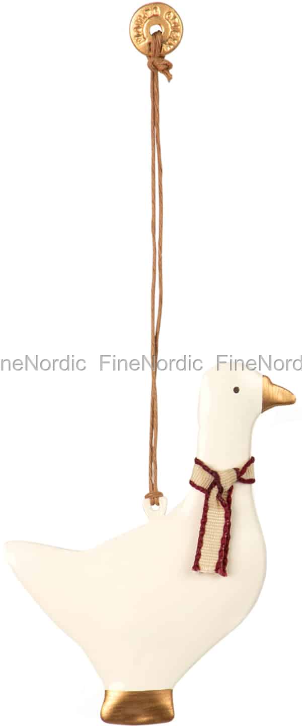 Diese kleine Maileg Gans aus Metall ist ein hübscher Weihnachtsschmuck für Ihren Weihnachtsbaum. Sie trägt einen in Rot eingerahmten Schal um den Hals und ist an einem Band befestigt so dass man sie leicht überall anhängen kann. Hängen Sie sie an einen Baum, einen Ast, einen Haken oder an einen Knauf und schon kommt Weihnachtsstimmung auf. Die Gans ist auch in einer etwas anderen Version erhältlich. Werfen Sie gerne mal einen Blick auf die vielen schönen Maileg Weihnachtsornamente, die wir anzubieten haben. Sie können sie Ihrer eigenen Sammlung hinzufügen oder sie als Weihnachtsgeschenk an einen Maileg Weihnachtsbaumschmuck Sammler verschenken.