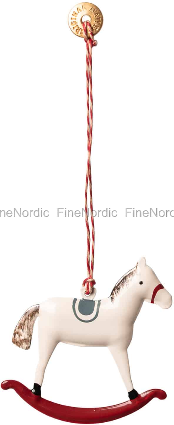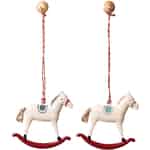 Dekorieren Sie Ihr Zuhause mit den wunderschönen Weihnachtsornamenten von Maileg. Schauen Sie sich doch zum Beispiel mal diesen Metall Schaukelpferd Weihnachtsschmuck 2019 A an. Wir lieben sein charmantes Aussehen und ganz besonders seine von Hand gemalten Details. Das Schaukelpferd hängt an einer rot-weißen Schnur und lässt sich damit einfach und schnell aufhängen. Sie können es am Weihnachtsbaum, an einem Weihnachtskranz oder an einem Haken oder einem Griff anhängen, und es verbreitet sofort etwas Weihnachtsstimmung im Raum. Es ist auch ein schönes Geschenk für einen Maileg Weihnachtsschmuck Sammler.