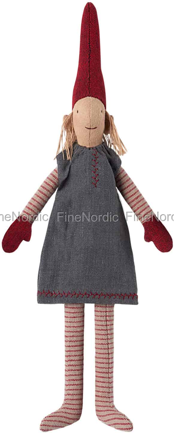 Das Weihnachtswichtelmädchen 2017 B trägt nicht nur ein Lächeln auf den Lippen, sie ist auch immer gut gelaunt. Gestreifte Arme, gestreifte Beine, ein roter Wichtelhut und ein graues Kleid, so hübsch ist sie anzusehen. Die langen Haare hängen ihr bis auf die Schultern herunter und diese wehen wie wild in Wind, wenn sie mal wieder einen Wettlauf mit den anderen Weihnachtswichteln macht. Denn sie schaut nicht nur hübsch aus, sondern ist auch schnell wie der Wind. So kann sie bei allen Weihnachtsvorbereitungen mithelfen und diese werden in Windeseile erledigt. Der Weihnachtswichtel Mini Pixy 2017 B ist ein toller Helfer während der Weihnachtszeit und eine schöne Dekoration auf der Couch oder dem Regal während des Rest des Jahres.