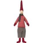 Der Mini Weihnachtswichtel 2018 C von Maileg zeigt uns stolz seinen gestreiften Strickpullover, welcher handgefertigt ist. Er trägt seinen roten Wichtelhut und rote Handschuhe, graue knielange Hosen und rote Socken. Er hat einen Schal um den Hals gewickelt, welcher ihn, oh so super lässig-elegant aussehen lässt. Er verschwendet jedoch keine Gedanken darüber, denn er will nur spielen und sich amüsieren. Er liebt es, mit seinen anderen kleinen Wichtelfreunden in Garten zu spielen oder sie bei schlechtem Wetter zum Spielen von Brettspielen in das Kinderzimmer einzuladen. Eine seiner Lieblingsbeschäftigungen ist das Backen von Weihnachtskeksen. Er möchte jedes Jahr neue Rezepte ausprobieren und serviert diese dann seinen Wichtelfreunden und wartet dann nervös darauf, ob sie die Kekse mögen oder nicht. Und sobald sie ihm gesagt haben, dass die Kekse lecker sind, dann teilt er sie auch mit seinem kleinen, menschlichen Freund. Der Mini Pixy 2018 C von Maileg ist eine wunderschöne Winterdekoration und auch ein großartiges Weihnachtsgeschenk für einen Maileg Liebhaber.