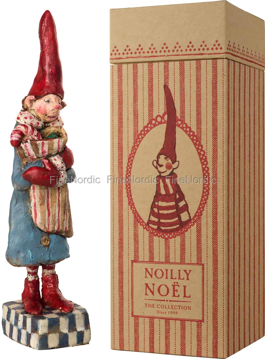 Der Maileg Weihnachtswichtel Noilly Noël Nr. 26 wurde, wie alle Produkte von Maileg, mit sehr viel Liebe zum Detail kreiert. Die Figur hat eine Höhe von 20 cm und ist von der Spitze des roten Wichtelhutes bis runter zu den roten Stiefelspitzen eine wahre Augenweide. Der Weihnachtswichtel wird in einer schönen Verpackung geliefert, welches ihn auch zu einer tollen Geschenkidee macht. Ganz fest umklammert hält der Wichtel einen gestreiften Sack aus dem eine rotgestreifte Zuckerstange herauslugt. Vielleicht versucht er sich aber auch mit seinen gekreuzten Armen etwas zu wärmen, denn trotz des schicken blauen Mantels und der dicken roten Handschuhe scheint er etwas zu frösteln. Seine Wangen und Nasenspitze sind nämlich von der Kälte ganz gerötet und richtig glücklich schaut er nicht aus. Er ist bestimmt gerade, nachdem er die letzten Weihnachtseinkäufe getätigt hatte, auf dem Weg nach Hause und denkt dabei sehnsüchtig an eine dampfende Tasse leckeren Wichteltee. Dann nichts wie nach Hause, kleiner Wichteljunge, die letzten Erledigungen sind gemacht, nun kannst Du dich entspannen und damit anfangen, Dich auf das Weihnachtsfest zu freuen.